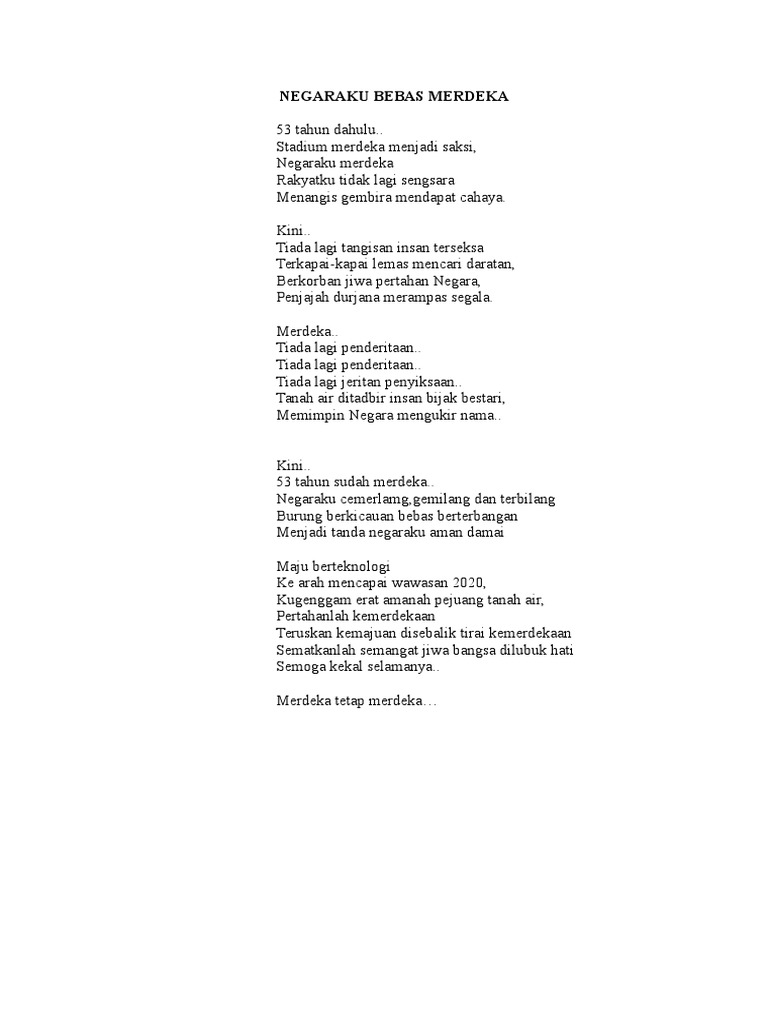 Puisi cinta tanah air berikutnya berjudul "negaraku nan jauh di mata". 3 mei 2019 00:12 26 3 1 + laporkan konten. Berharap agar waktu cepat berlalu. Berikut ini beberapa contoh puisi anak sd, smp dan sma yang bertemakan alam. Kumpulan puisi tentang indonesiaku tercinta. Contoh puisi anak tema hijaunya alam. Berisi syarat makna yang dalam tentang pesan seorang guru kepada muridnya. Sae dan bakti guru mendidik negeri karangan teguh ariee sandi, dkk. Makna puisi sajak buat negaraku karya kriapur / teks puisi sajak 17 agustus karya yudhistira kt puisi :